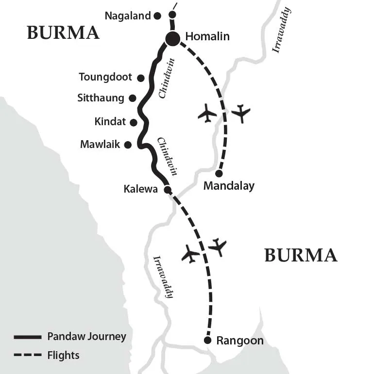 Only the small Kalay and Zawgyi Pandaws, with their ultra-low drafts, can journey north beyond Homalin in the high water season from mid-August to Mid-October on an adventure to Nagaland, famous for the fierce and distinctive Naga warriors and various ethnic communities. Along the way, the Chindwin River passes through dramatic scenery of dense jungles, high cliffs and deep gorges and visits remote villages each with a unique way of life.To further enhance your experience, we now have a number of quality mountain bikes for your use on the cruise.PLEASE NOTE: The itinerary for this expedition is indicative only and subject to reconnaissance. As we travel to remote areas, changes to the itinerary will inevitably occur. A flexible approach is required if you book this cruise.Please note that Chindwin expeditions need special permits which can take up to 3 weeks. We kindly ask you to contact us via EMAIL or PHONE for short notice bookings.