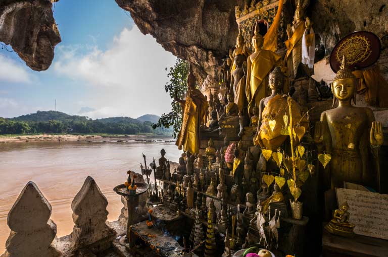 Morning at leisure in Luang Prabang before setting sail at midday upstream. Afternoon sightseeing by local boat exploring the unique Pak Ou Caves, a Buddhist sanctuary with spectacular limestone cliff faces. See the production of local Laos whisky at the Whisky village and shop for locally produced handicrafts.