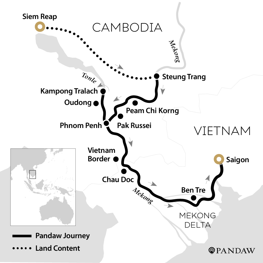 New for 2024, Pandaw's Classic Mekong expedition will be sailing from central Saigon. Embarking or disembarking in Vietnam’s bustling metropolis our 7 night expedition takes intrepid travellers along the mighty Mekong River through the vast delta so rich in human life and endeavour, to the serene countryside of Cambodia.