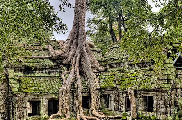 Following breakfast in your hotel, set out for a day of exploration amongst the various temples and ruins of the Angkor Empire. The morning we will cover the large complex surrounding the imposing Bayon Temple. After lunch at a local restaurant, we discover more secluded temples including the awe inspiring and overgrown Ta Prohm, made famous by the Tomb Raider movie.
