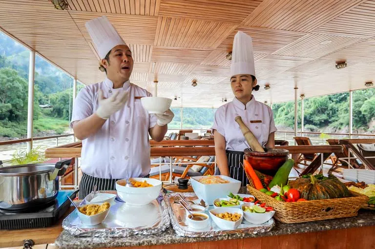 Today is dedicated to exploring the rich artistic heritage of Luang Prabang. We begin at Ock Pop Tok, a wonderful social enterprise that provides sustainable employment and training for women from local weaving villages, preserving traditional Lao textile techniques. We then visit the Traditional Arts and Ethnology Centre (TAEC) to understand more about the diverse ethnic cultures and musical instruments of Laos. After lunch back on board, we take a short trip to the village of Ban Chan for a pottery demonstration at a local workshop. The day concludes with a serene sunset cruise on the Mekong alongside the city before returning to our central mooring.
