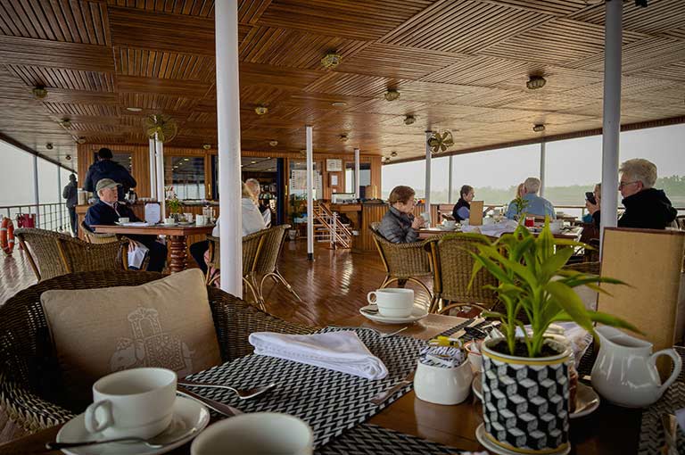 Spend the day sailing against the strong currents of the Brahmaputra River, making your way through the lush Assam countryside. Take advantage of the onboard activities and lectures to learn more about the region's fascinating culture and history.