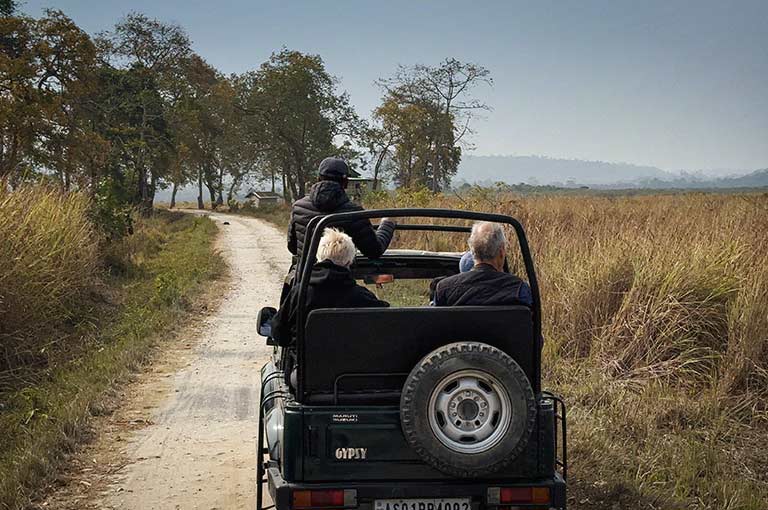 Embark on a thrilling jeep safari through the renowned Kaziranga National Park, a UNESCO World Heritage site. This wildlife haven boasts the world's largest population of the Indian One-Horned Rhinoceros and a high density of Royal Bengal Tigers, though sightings of these elusive creatures are rare. Keep an eye out for other fascinating wildlife like Indian elephants, bison, swamp deer, and a variety of bird species as you traverse the park's diverse landscape.