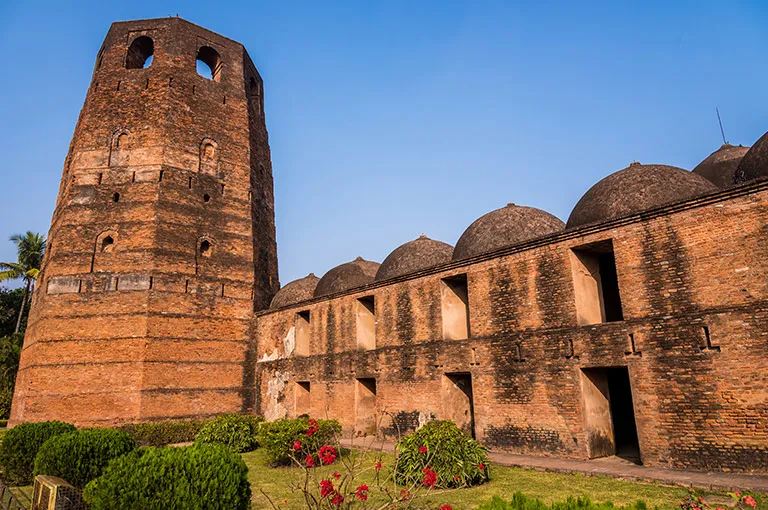 Embark on a walk to the Khushbagh, a peaceful Mughal-style Garden that encloses the tombs of Siraj-ud-Daulah, the last independent Nawab of Bengal, and his family. Continue upstream to witness the grandeur of Hazarduari Palace, an architectural masterpiece built by an English architect in 1837. Explore its opulent interiors, showcasing a fascinating collection of paintings, china, weapons, and other artifacts. Next, visit the magnificent Katra Mosque and the impressive Nashipara Palace, a testament to the wealth and influence of the local merchants during the "White Mughal" era – a period of cultural exchange between English and Indian influences. Finally, we visit Katgola Palace, an exquisite example of Georgian architecture built by wealthy local merchants, further highlighting the unique blend of cultures that flourished during this era.Moor overnight on the riverbank across from town.
