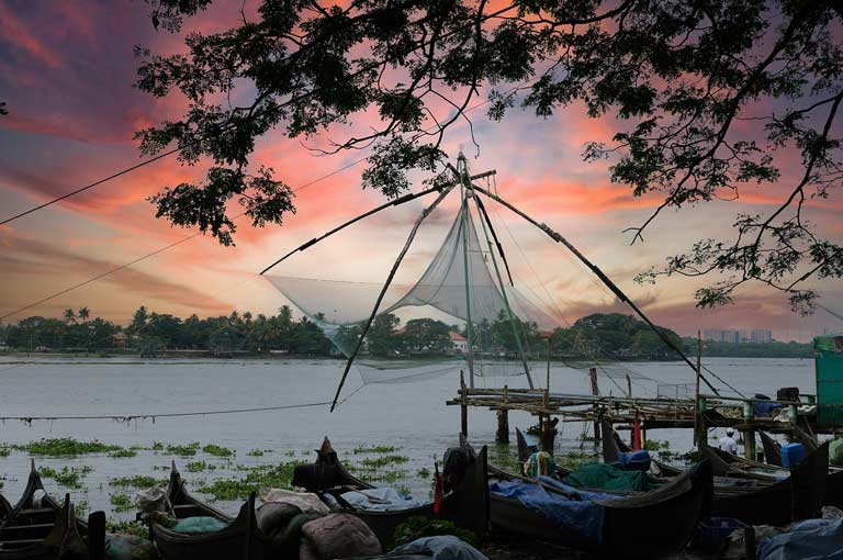 Visit Fort Kochi, St Louis’s church and Jew Town with its old Paradesi synagogue, museums, the Shiva temple, markets and much else. Afternoon sail to a village of coir weavers/shell harvesters and see many indigenous techniques of local fishing by small scale Chinese nets and fish traps.