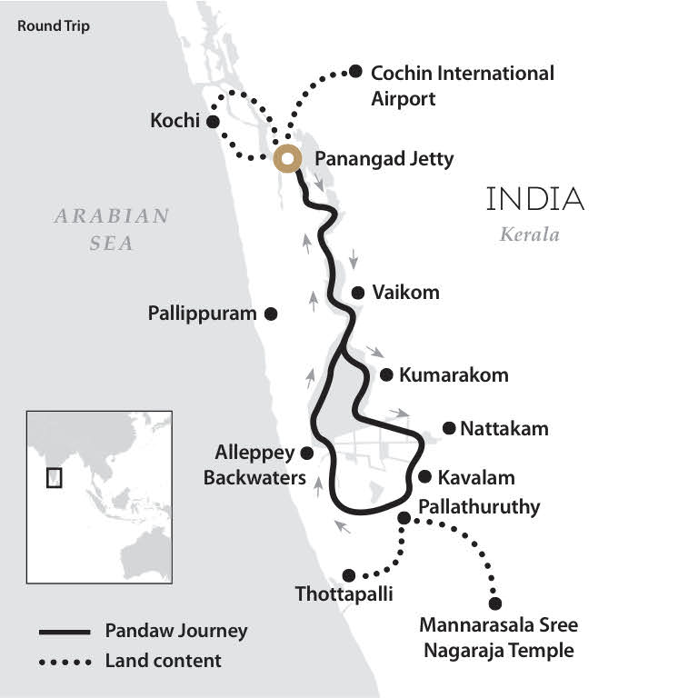 The Kochi Pandaw will operate weekly an eight-day circular itinerary from Kochi port visiting the main towns and remoter areas of the backwaters with its 900km of waterways that connect rivers with lakes. There will be exciting visits to ancient churches, Hindu temples, artisan villages and the legendry beaches of the Malabar coast.