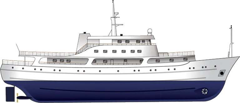 The Andaman Explorer was built as the MV Atlantic Guard in 1963 in Norway as a Norwegian coast guard vessel. She is 61 meters long with her original Rolls Royce engines. The hull is built to 'ice class' with extra thick plates and she has the power to withstand north Atlantic storms or chases out to sea. Very handy when cruising in tropical waters!