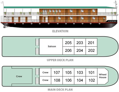 - 6 upper deck staterooms and 8 main deck staterooms