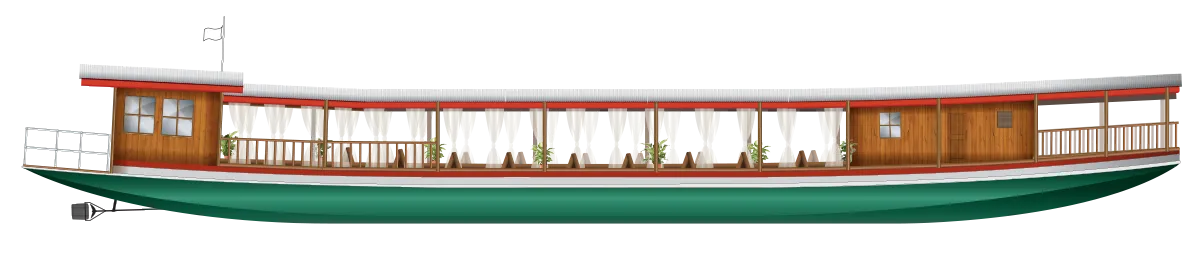 Pandaw's own long-tail boat transports guests between Vientiane and the town of Pak Lay during our 10 night Laos Mekong expedition. Purchased in 2023 as very low water levels around Vientiane forced us to revise our sailing schedules and find alternate ways to reach the Laos capital without resorting to busses.